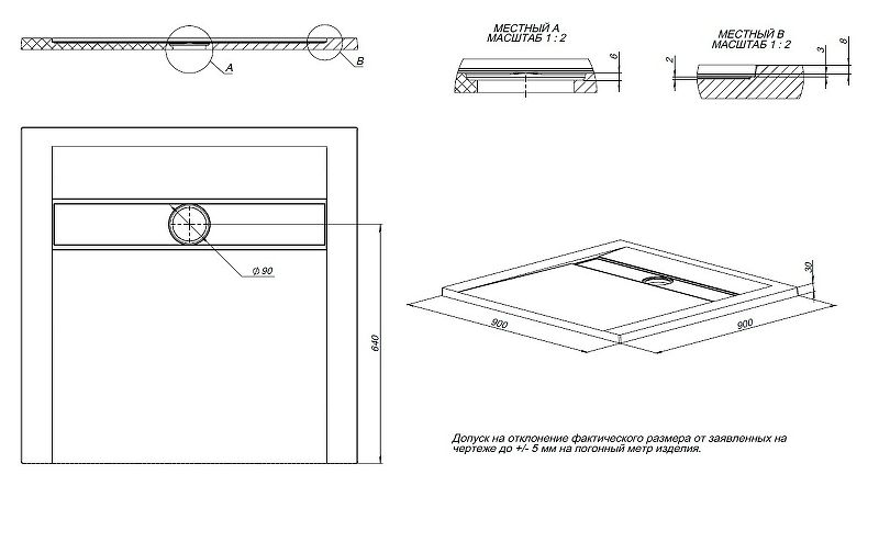 Размеры (ШхВхД): 900х30х900 мм.