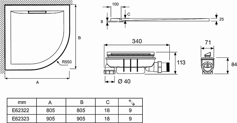 Душевой поддон Jacob Delafon Flight Pure E62322-00 80x80 см белый купить