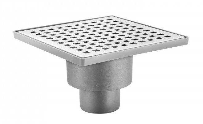 Решетка толщина 0,8 ммНержавеющая сталь AISI 304Горловина трапа пластикКомбинированный затворКорпус PP Вертикальный выпуск D50Монтаж 360°
