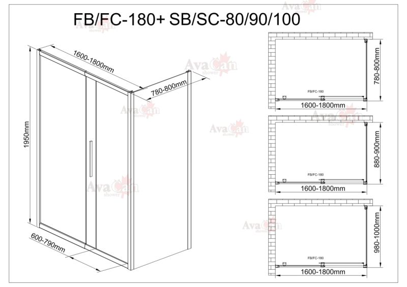 Душевой уголок AvaCan FB 160-180 + SB 80 MT чёрный