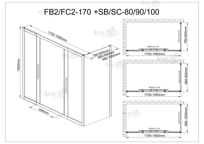 Душевой уголок AvaCan FC2 170-190 + SC100 MT хром