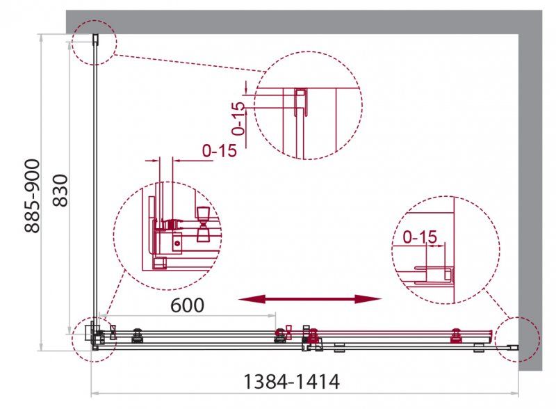 Материал полотна двери: закаленное стекло Регулировка ширины: предусмотрена за счет боковых проф... Подробнее