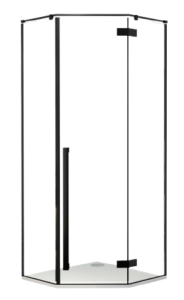 Достоинства:распашная дверь с магнитным замком Soft close закрывается плотно, вода не просачивается сквозь щель; регулируемые пристенные профили позволяют установить стекла к неровным стенам;закаленное стекло (8 мм) практически невозможно разбить, в случае раскола оно рассыпается на грани с тупыми концами, о которые нельзя порезаться;черный алюминиевый профиль;черная алюминиевая опорная планка и петли черного цвета;ручка из нержавеющей стали черного цвета (L = 80 см);быстрая сборка Quick staple позволяет собрать уголок без силикона;право- и левосторонняя установка.Приобретается отдельно: низкий поддон P101, сифон, P101 деревянная решётка пентагональная 86х86 * длина и ширина указаны с учетом поддона