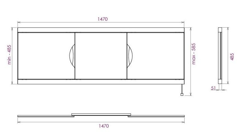 Ножки позволяют регулировать экран по высоте от 52 до 60 см, благодаря этому экран является универсальным и впишется в интерьер любой ванной комнаты.