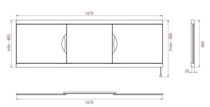 Ножки позволяют регулировать экран по высоте от 52 до 60 см, благодаря этому экран является универсальным и впишется в интерьер любой ванной комнаты.