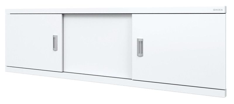 Конструкция имеет три подвижные двери из МДФ, покрытых высокоглянцевой белой пленкой. Две боковые дверцы с врезными хромированными металлическими ручками.