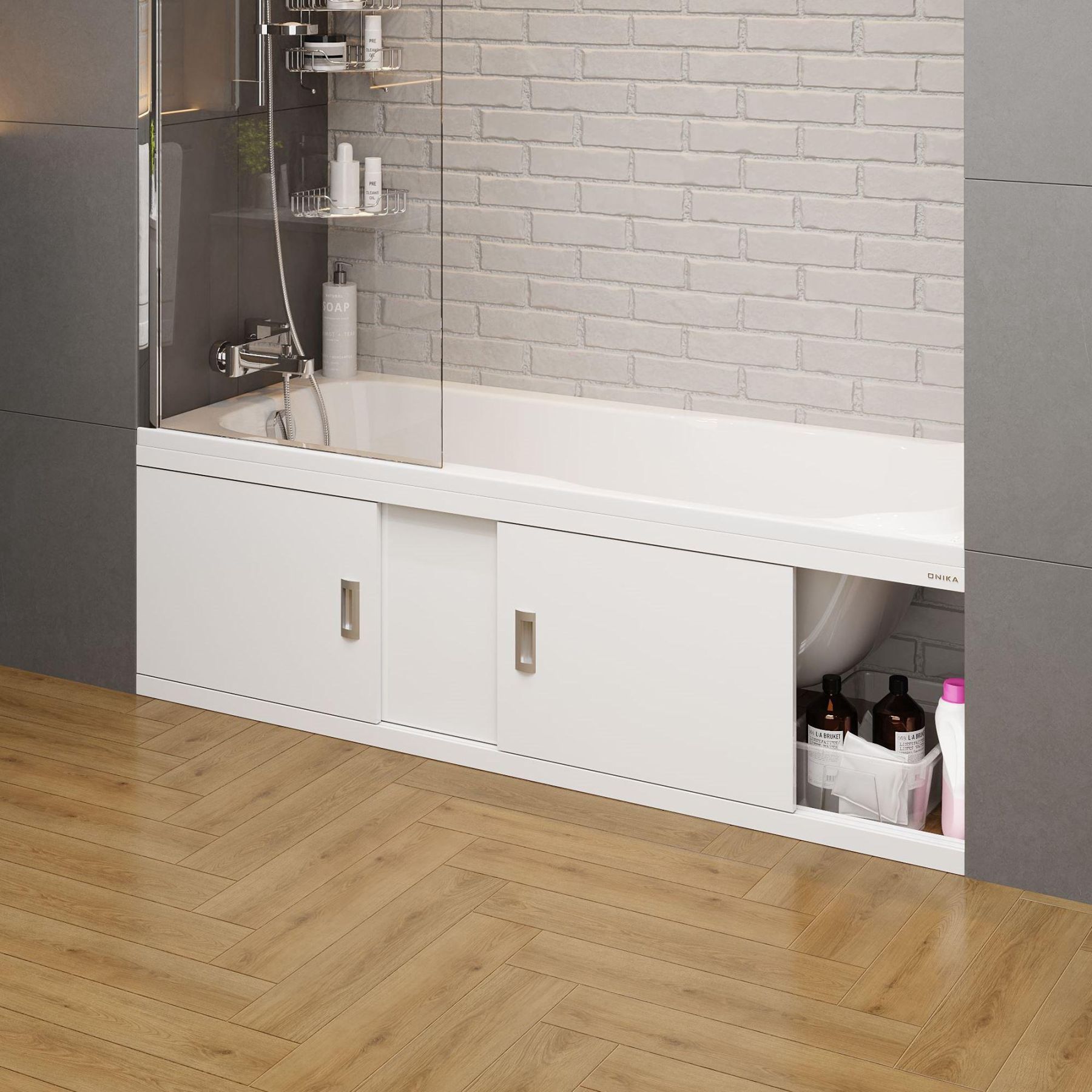 Экран Onika обладает повышенной износостойкостью, отлично переносит эксплуатацию в помещении с высокой влажностью и хорошо сочетается с любыми ваннами.