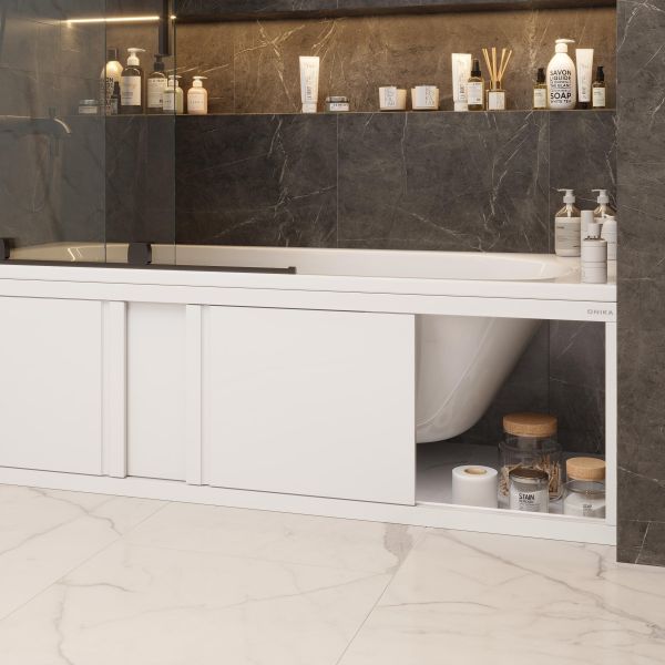 Универсальный экран под ванну 150 см Onika Одио скрывает все расположенные под ванной коммуникации и служит профилактикой скопления загрязнений под чашей ванны.