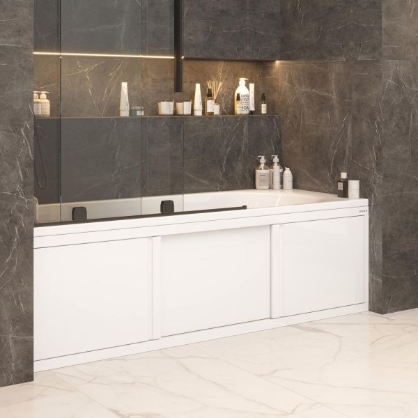 Универсальный экран под ванну 180 см Onika Одио скрывает все расположенные под ванной коммуникации и служит профилактикой скопления загрязнений под чашей ванны.