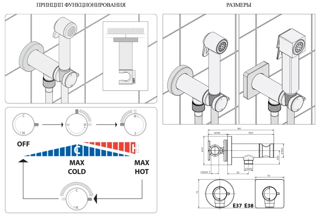 Bossini Nikita Mixer Set гигиенический комплект: смеситель прогрессивный, душ с кнопкой подачи воды, шланг 1250 мм, держатель с шланговым подключением, цвет античная бронза