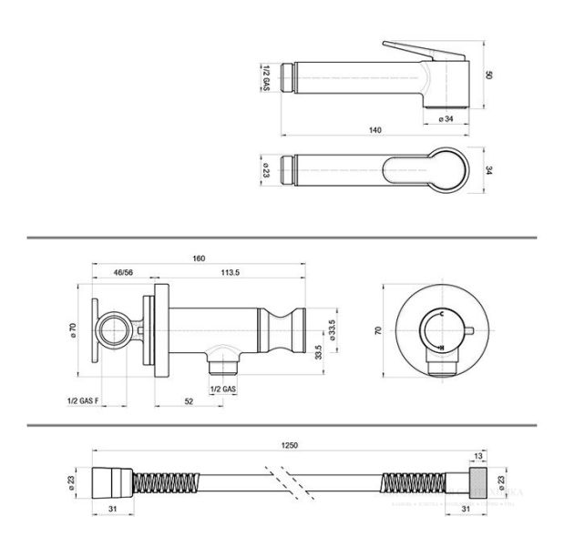 Гигиенический душ Bossini Paloma Brass Mixer Set E37005.022 бронза купить