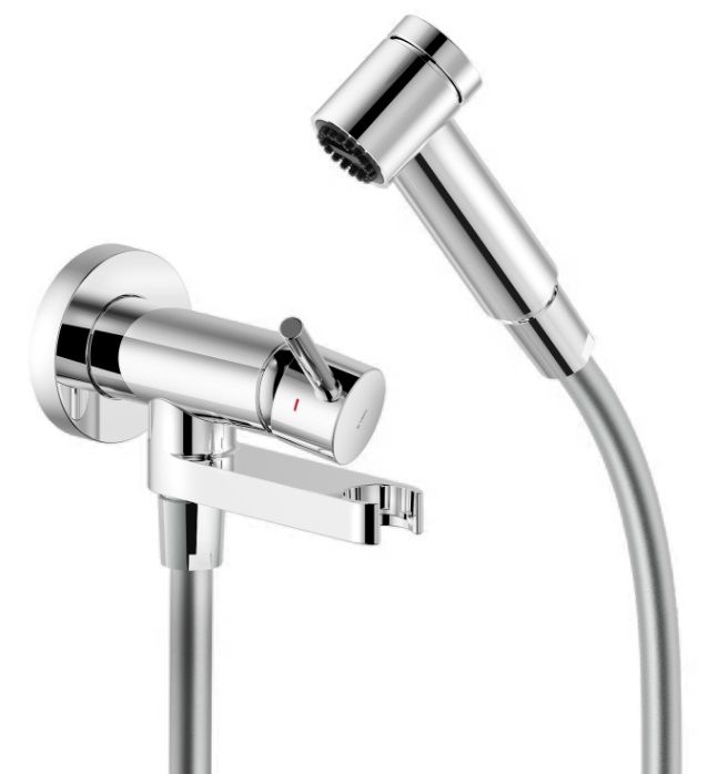 Смеситель с гигиеническим душем Nobili AV00600CR обладает своеобразной конструкцией. Воспользоваться смесителем будет проблематично, если не снимешь лейку гигиенического душа, держатель которой установлен впритык к смесителю. Получается, что конструкция является и своего рода защитой от случайного включения. В комплект входит все необходимое для использования гигиеническиго душа: смеситель, его внутренняя часть, лейка гигиенического душа, шланг и держатель.
