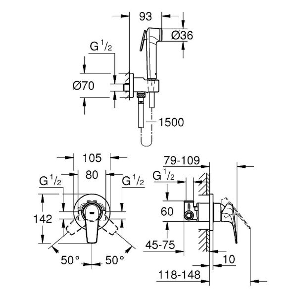 Гигиенический душ Grohe BauFlow, 29328000, со смесителем, хромВключает в себя:Смеситель для душа GROHE BauFlow (внешняя и встраиваемая части), хром (29046000)