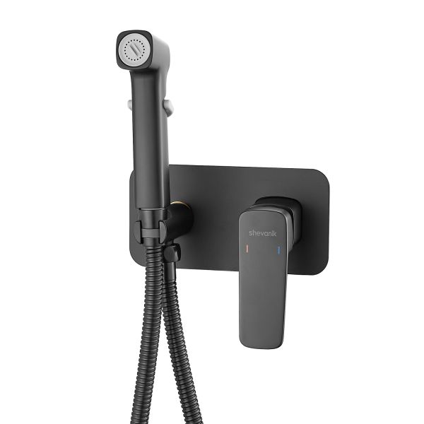 Гигиенический душ со смесителем Shevanik S9905H в черном матовом цвете предназначен для скрытого монтажа, благодаря чему сохраняется эстетичный вид ванной комнаты. Изготовлен из надёжной латуни, что обеспечивает долговечность и устойчивость к коррозии. Управление осуществляется с помощью керамического картриджа и рычажного механизма, гарантируя плавную и точную регулировку воды.