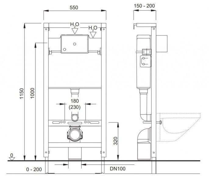 • Ширина инсталляции: 55 см