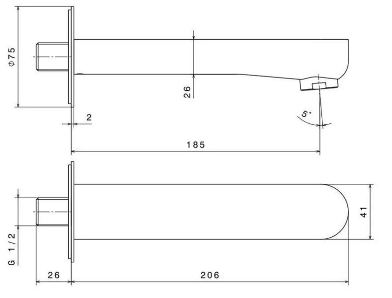 • Длина излива, см: