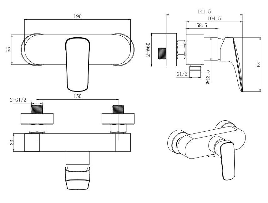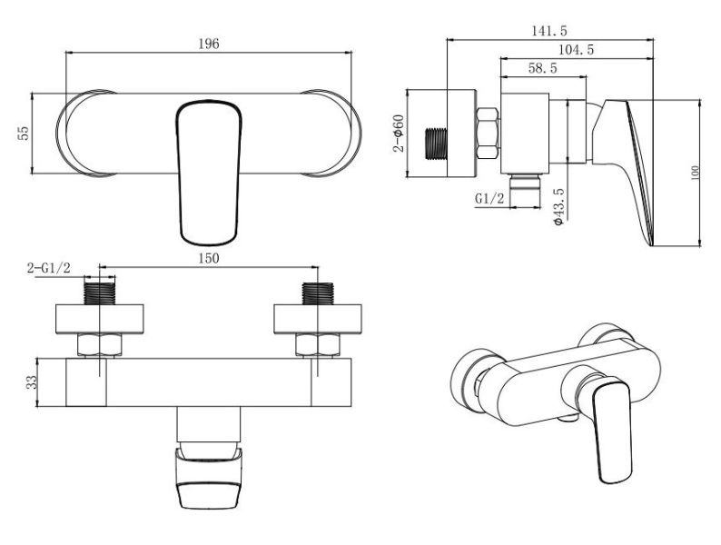 • Душевой гарнитур: душевая стойка с мыльницей, лейка, шланг