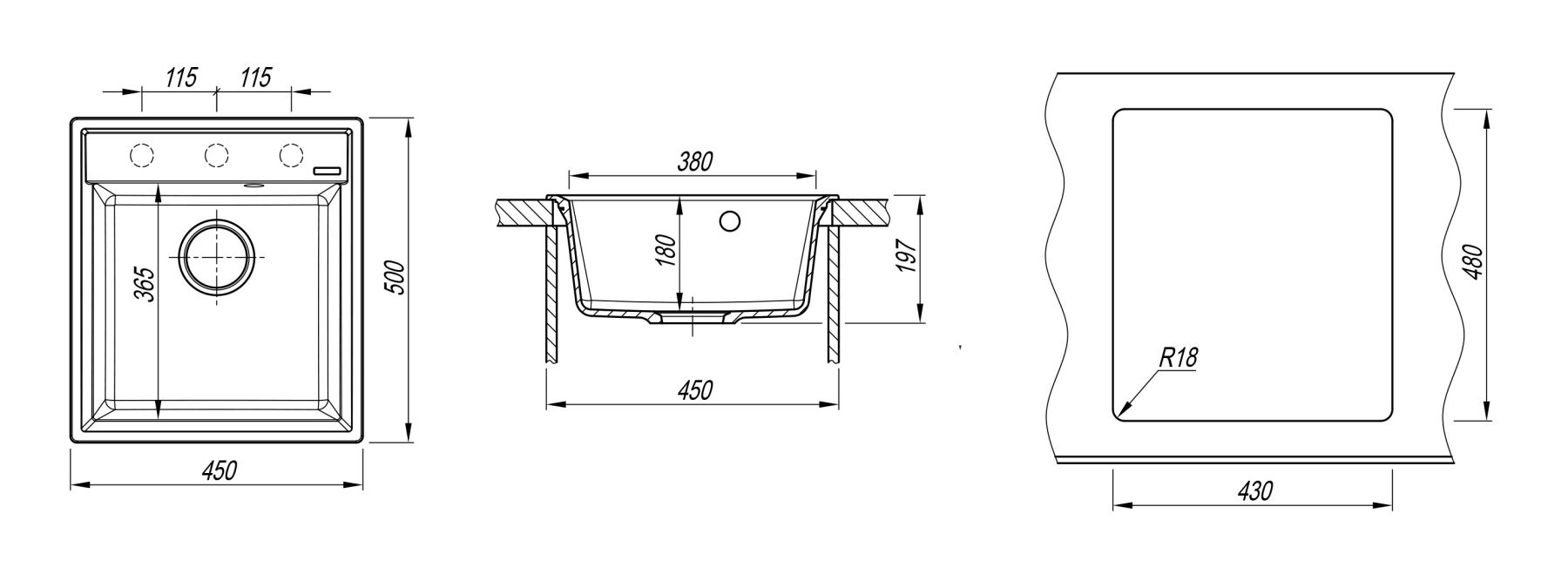 - Отверстия под смеситель:нет