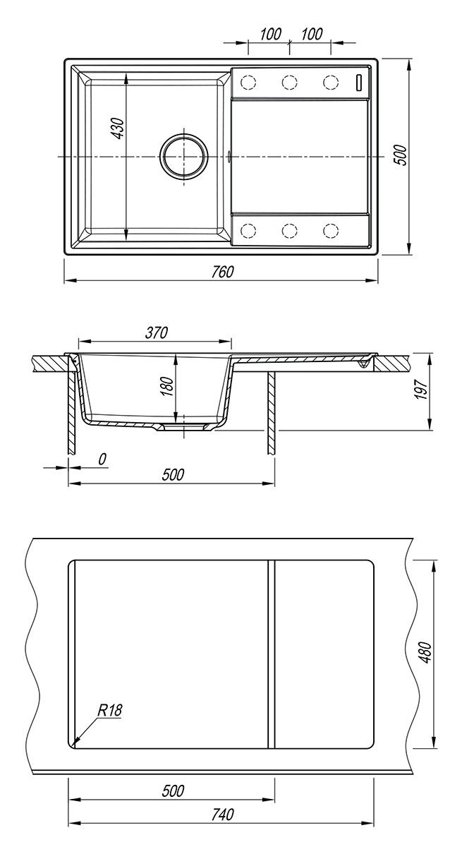 • Отверстия под смеситель: