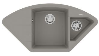 Благодаря своей форме, мойка подойдет как для кухонного гарнитура с подводкой воды в одном из углов помещения, так и для стандартного размещения в прямом шкафу. Эргономичная мойка с дополнительной чашей, которую можно использовать для мытья овощей и фруктов или для размораживания продуктов.