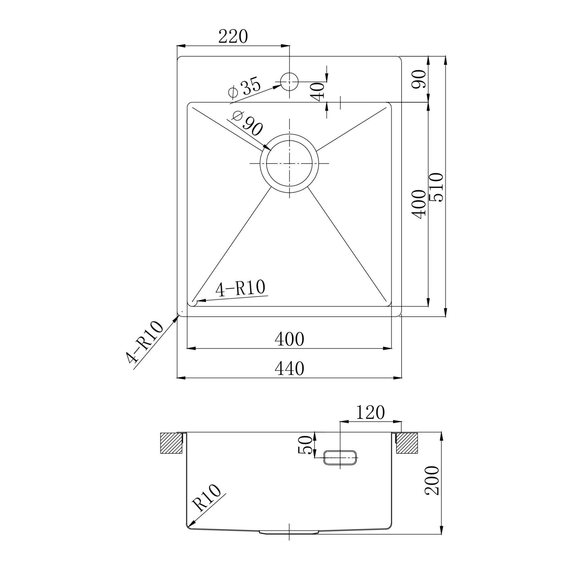- Сливная арматура с выпуском 3 ½ (D-90мм) и сифон с возможностью подключения посудомоечной и стиральной машины