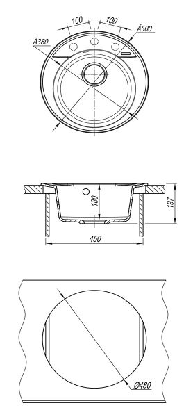 Кварцгранит - композитный материал, который имеет однородную структуры по цвету по всей глубине материала мойки.