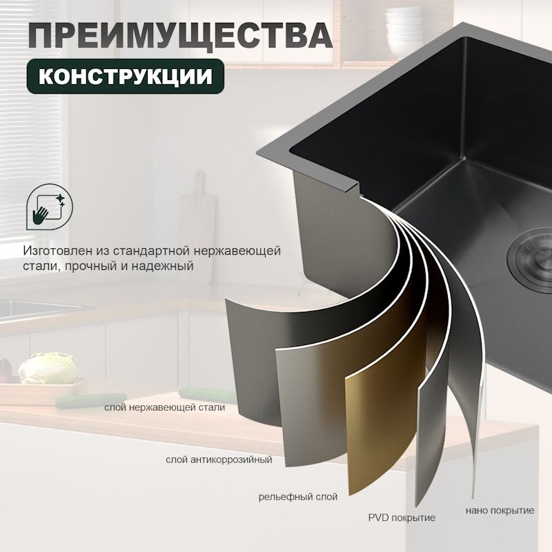 Кухонная мойка Splenka S700.5045.09, графит. Размер - 500*440*220мм. Кухонные мойки Splenka от... Подробнее