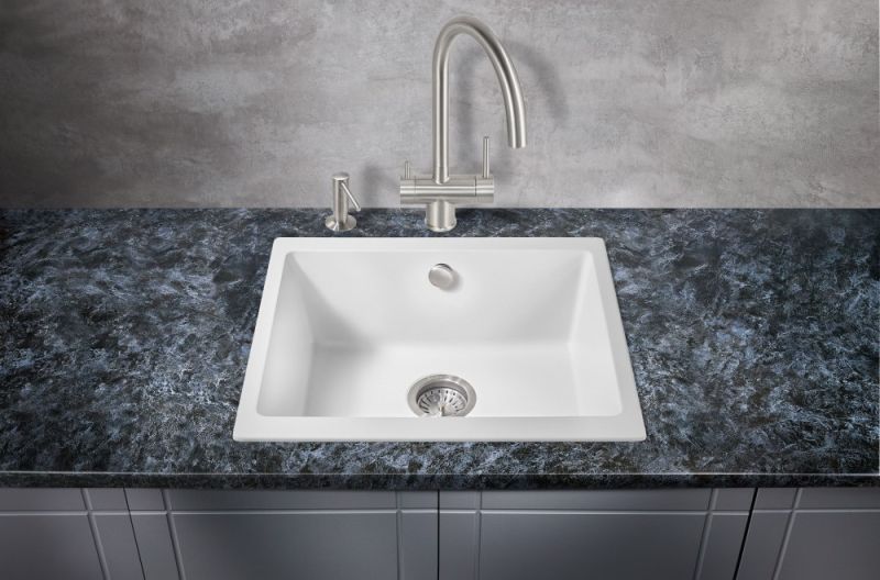 Прямоугольная мойка для кухни MILACIO Leon 55 Cuarzo (MC.77082) из искусственного камня, выполненная в белом матовом цвете, впишется в любой дизайн и станет ярким украшением вашей кухни.