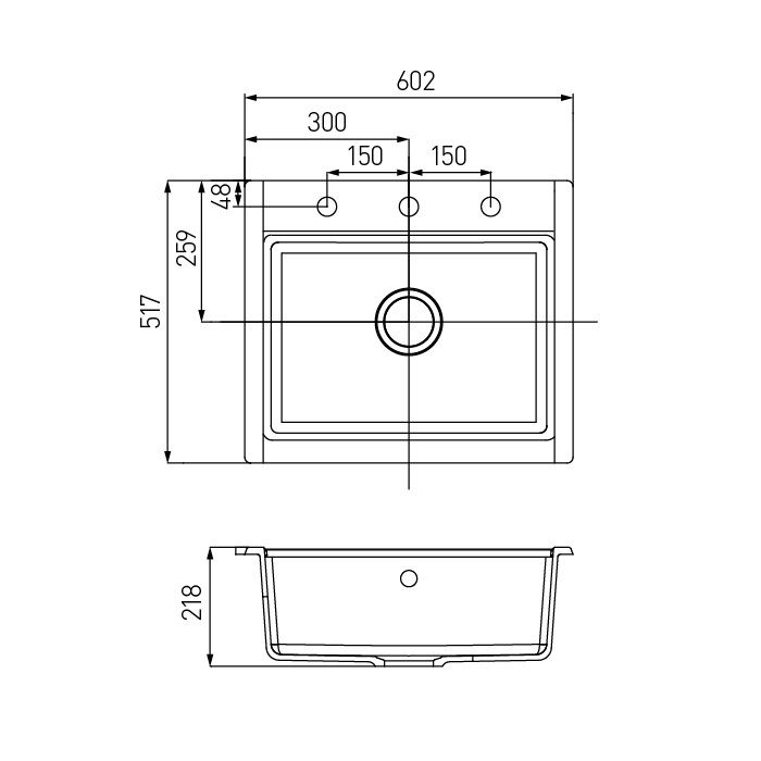 - Отверстия под смеситель:1