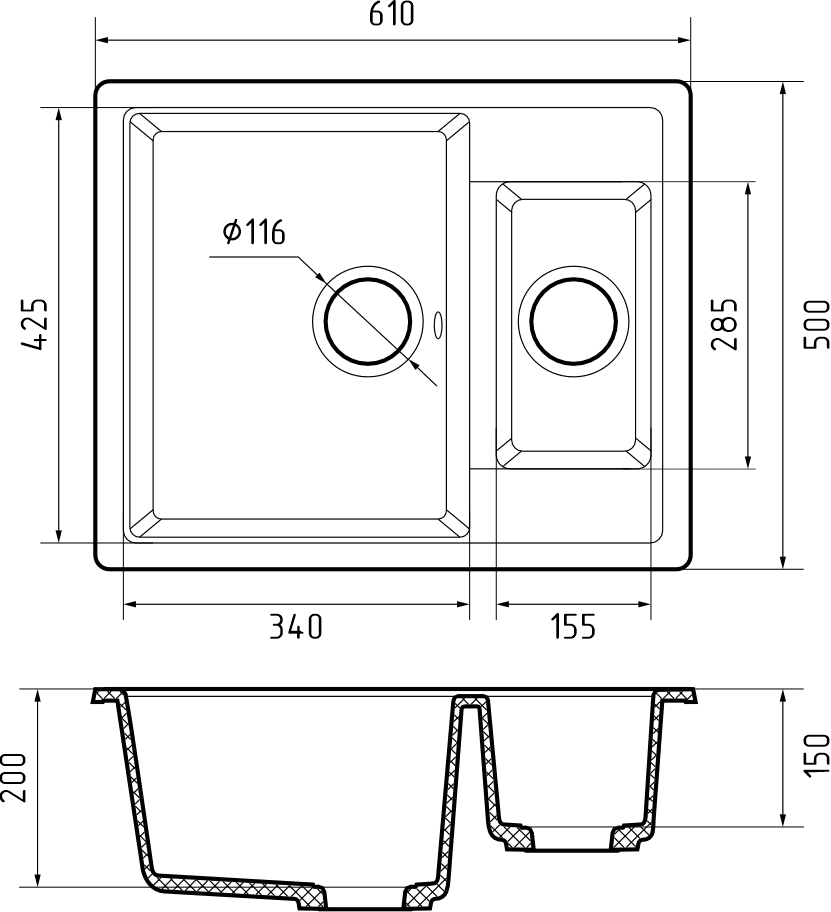 Мойка кухонная GranFest CLASSIC Q-610K черный