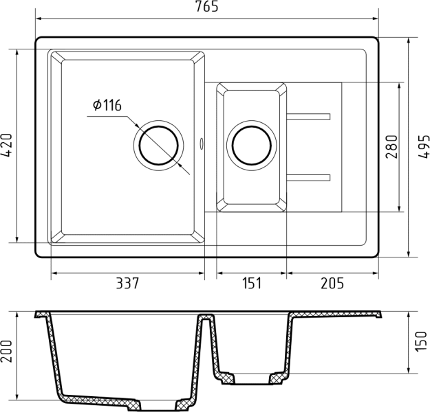 Мойка кухонная GranFest CLASSIC Q-775KL графит купить