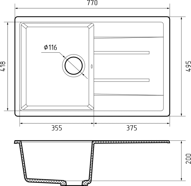 Мойка кухонная GranFest CLASSIC Q-780L серый Подробнее