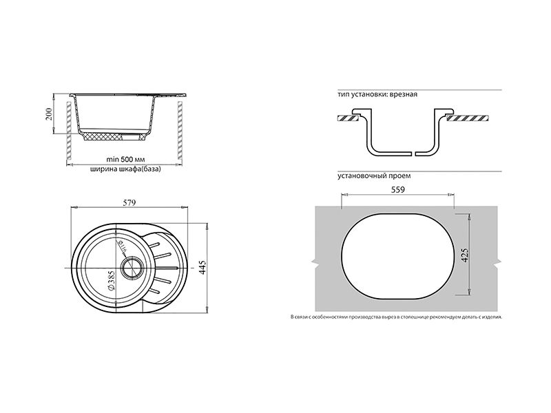 Мойка кухонная GranFest Графит Rondo R-580 L граф купить