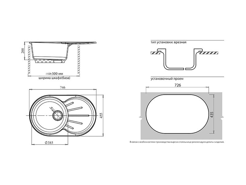 Мойка кухонная GranFest Графит Rondo R-750 L граф