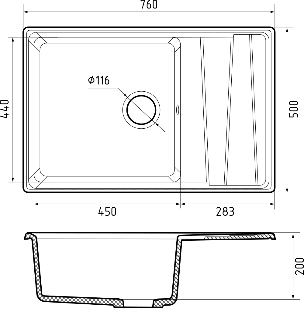Мойка кухонная GranFest Песок Level LV--760 L пес