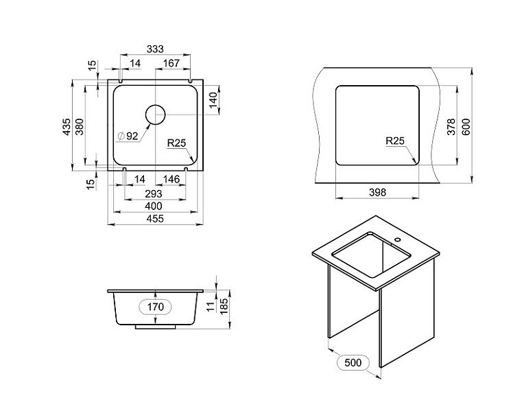 Мойка кухонная Granula 3801, АЛЮМИНИУМ Подробнее
