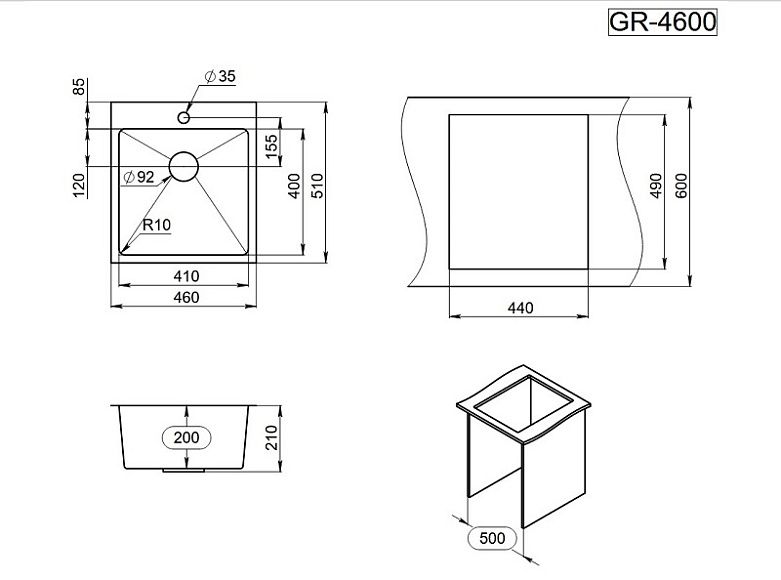 Мойка кухонная Granula 4600, ГРАФИТ МАТОВЫЙ