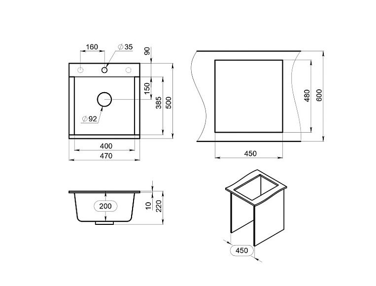 - Отверстия под смеситель:1