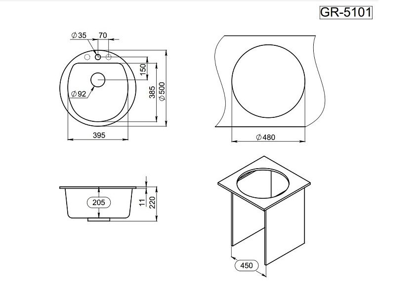 Мойка кухонная Granula 5101, АЛЮМИНИУМ