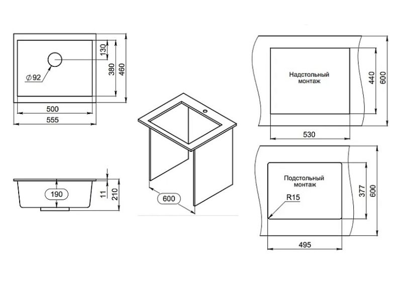 Мойка кухонная Granula 5551, АЛЮМИНИУМ