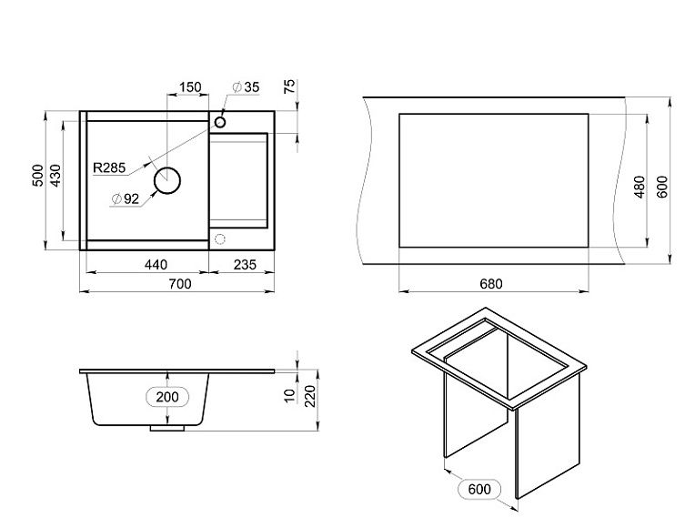 Мойка кухонная Granula 7003, ЧЁРНЫЙ
