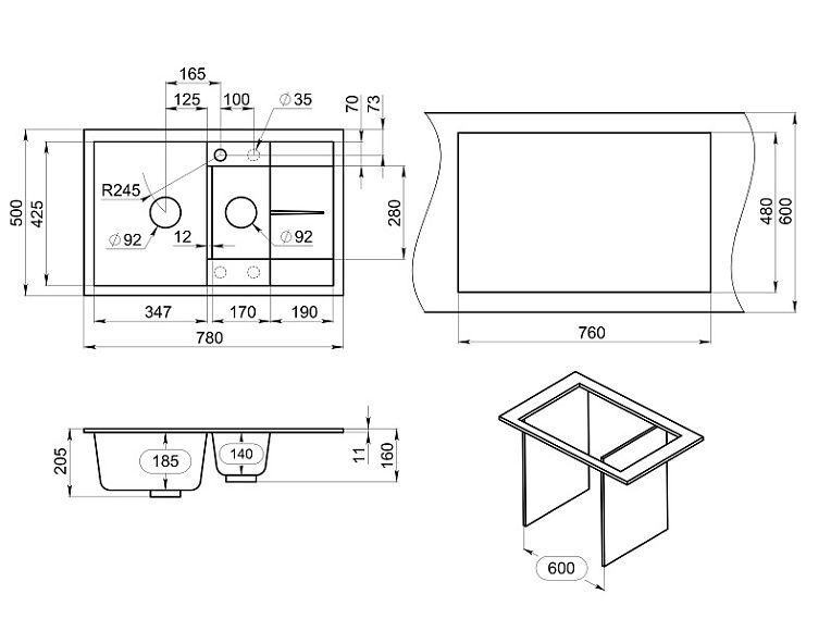 Мойка кухонная Granula 7802, ШВАРЦ купить