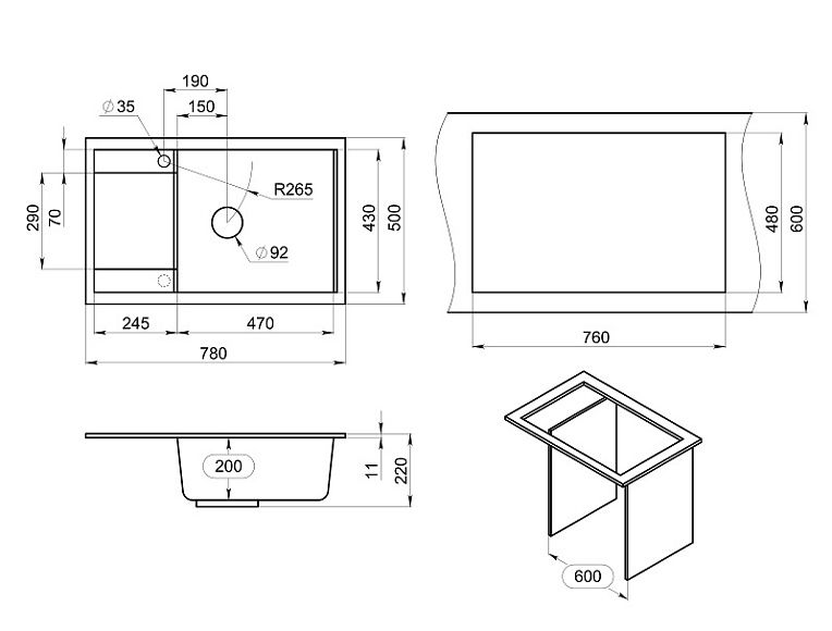 Мойка кухонная Granula 7805, ТУРМАЛИН