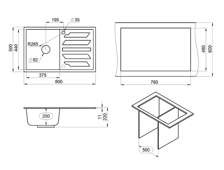 Мойка кухонная Granula 8002, ТУРМАЛИН