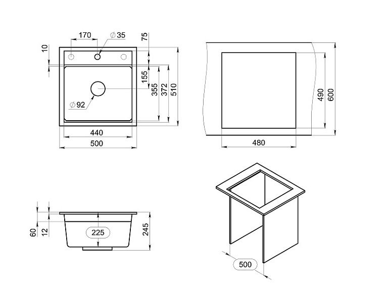 Мойка кухонная Granula Kitchen Space 5002, АРКТИК