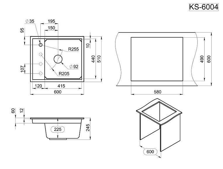 Мойка кухонная Granula Kitchen Space 6004, АЛЮМИНИУМ