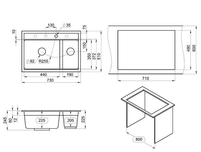 Мойка кухонная Granula Kitchen Space 7302, ЧЁРНЫЙ Подробнее