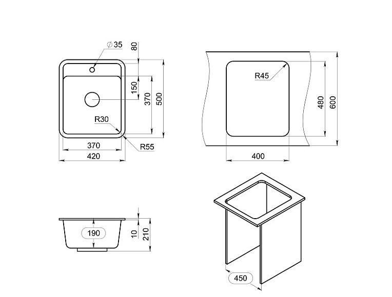 Мойка кухонная Granula Standart 4202, ЧЁРНЫЙ