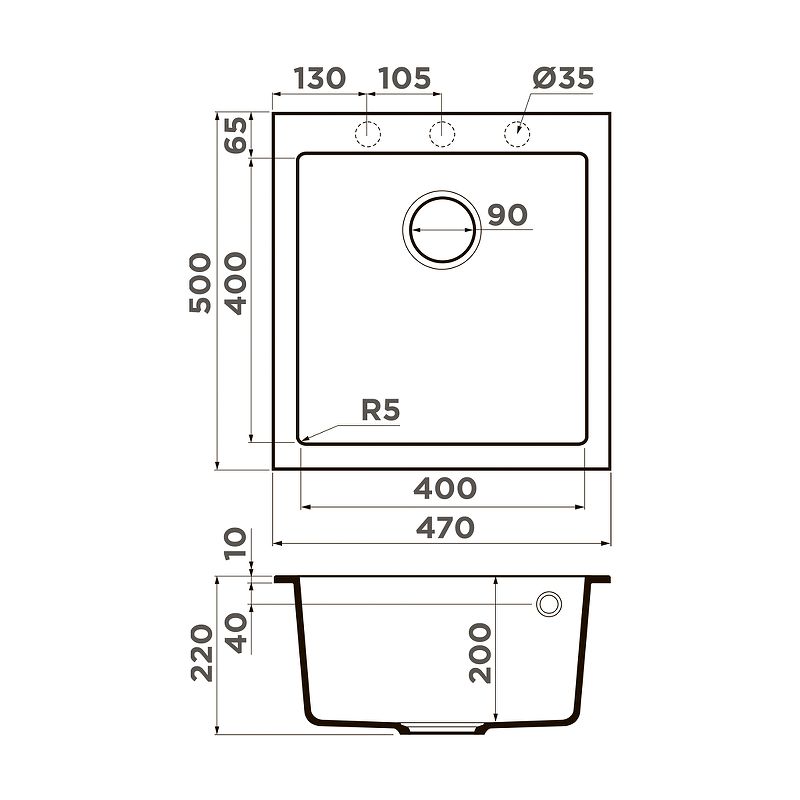 - Отверстия под смеситель:нет