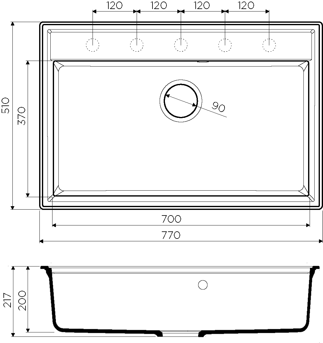 - Отверстия под смеситель:нет